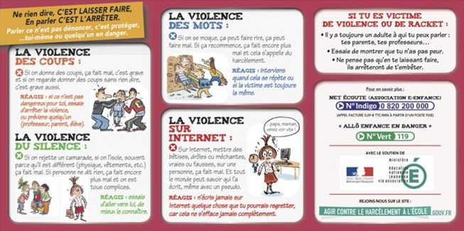 | Collège | Carte d’identité scolaire | Une illustration des différentes formes de violence à l’école | Ministère de l’éducation nationale | Télécharger |